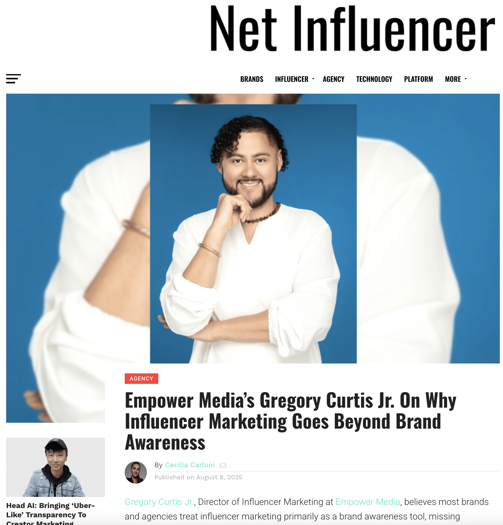 As featured by journalist Cecilia Carloni, of NetInfluencer.com - Gregory Curtis Jr. is transforming influencer marketing at Empower Media into a full-funnel performance tool—not just a brand awareness play.